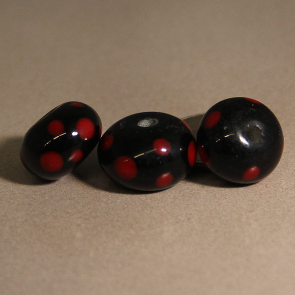 Spacer Bead - Glass - Black with Red Dots Bead - .48" Round x .32" Height with a .1" hole diameterSKU: JEBE-STI-008Special Price $0.65 Regular Price $1.00 -
