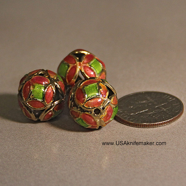 Spacer Bead - Glass - Tan with Red & Brown Swirls Bead - .53" Round x .35" Height with a .19" hole diameterSKU: JEBE-STI-005Special Price $0.65 Regular Price $1.00 -